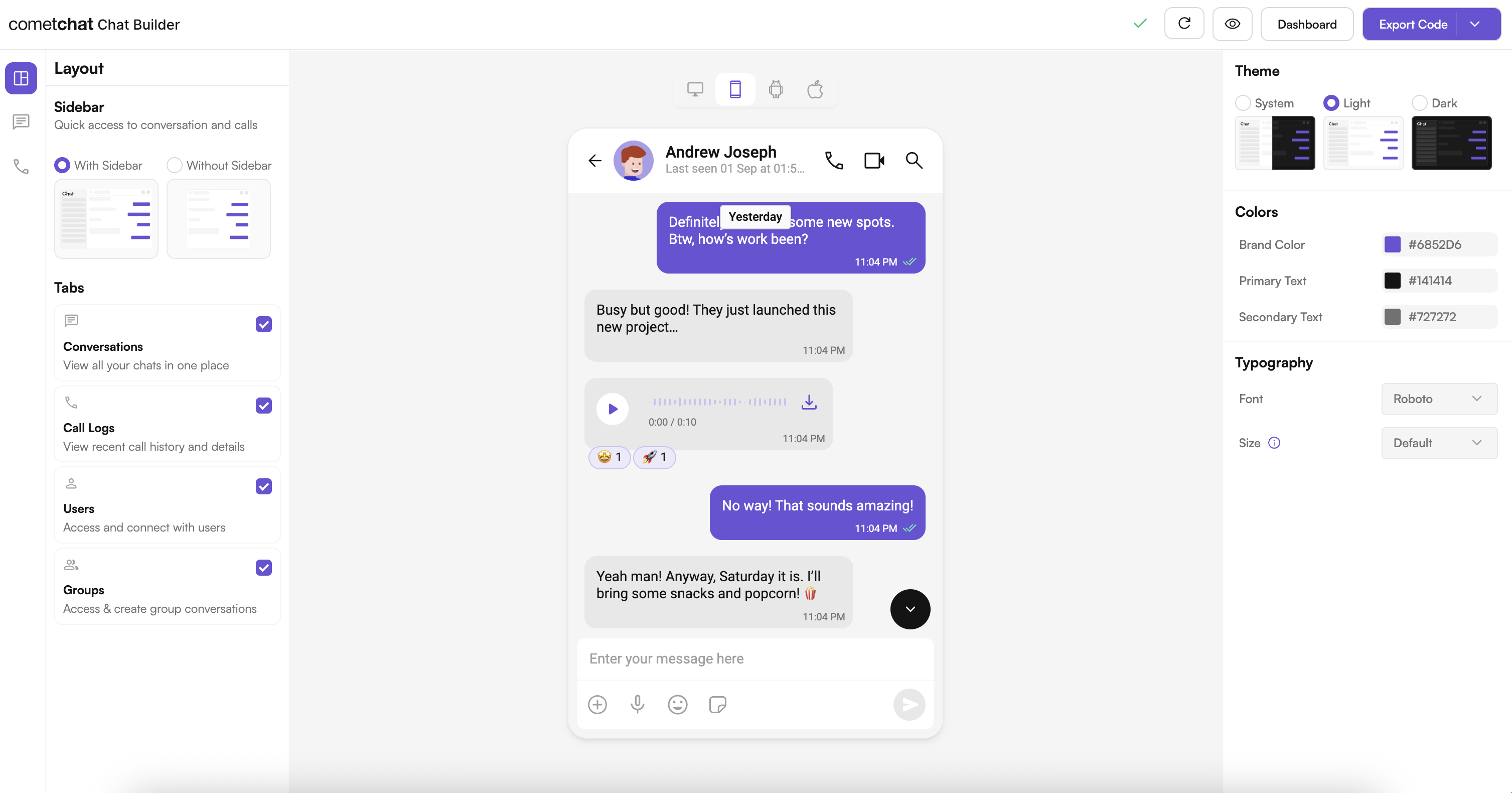 Experience the CometChat UI Kit Builder in action:Integration