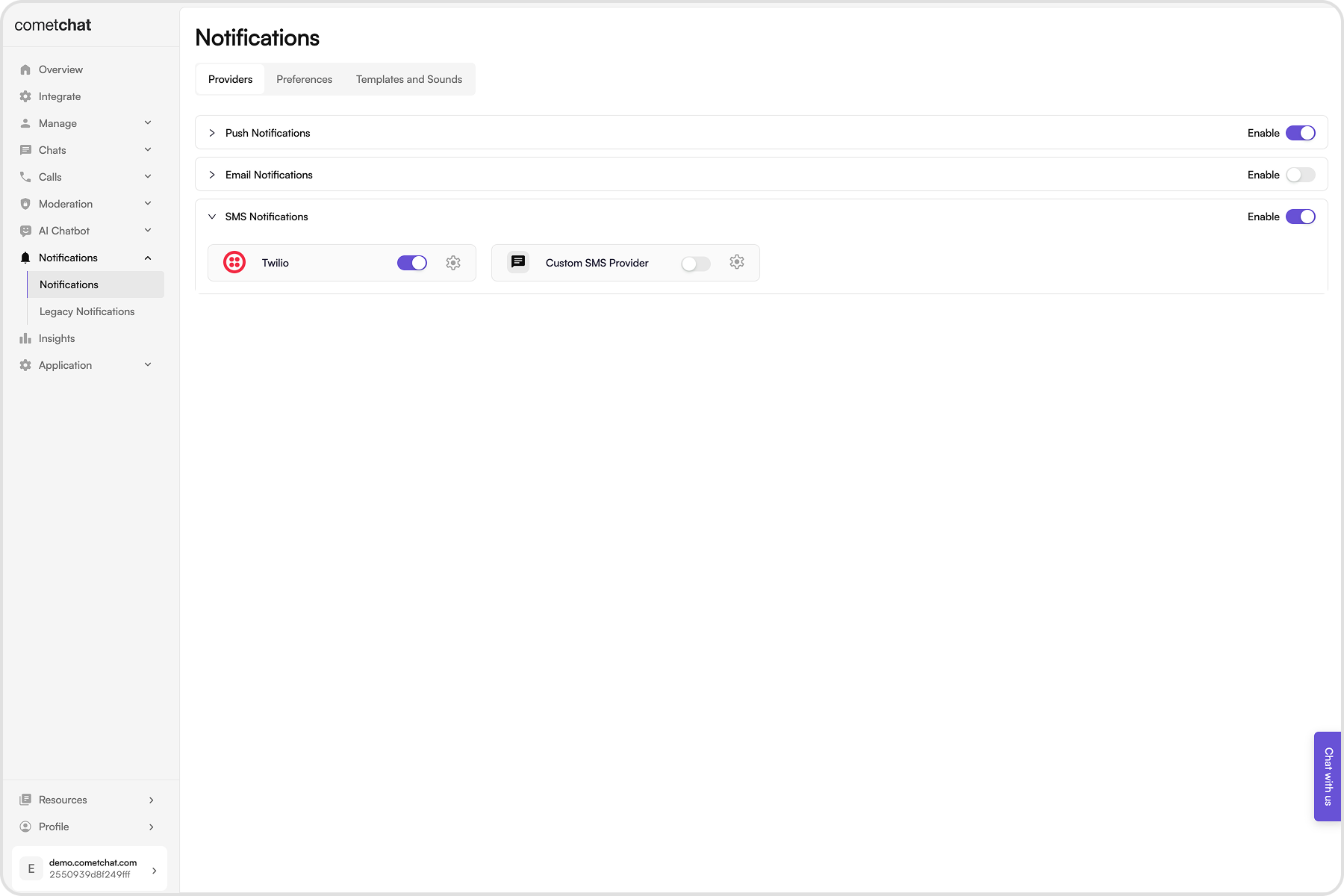 - Login to CometChat dashboard and select your app.