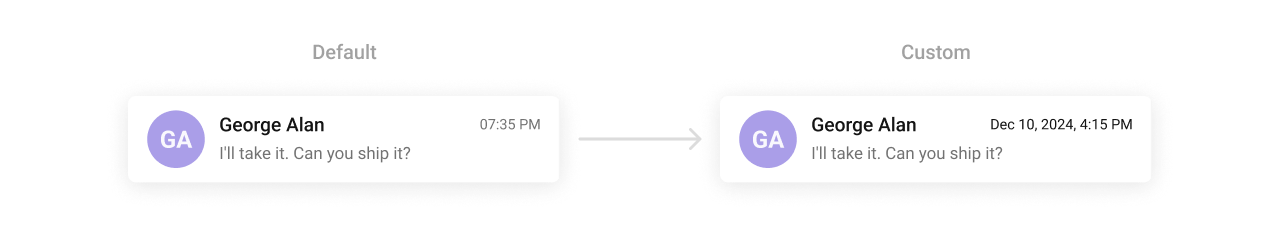 TheCometChatDate Component formats and displays timestamps in conversation lists and message threads. It ensures time-related information is clear and consistent. Developers can customize its text appearance, alignment, and colors to fit various contexts.